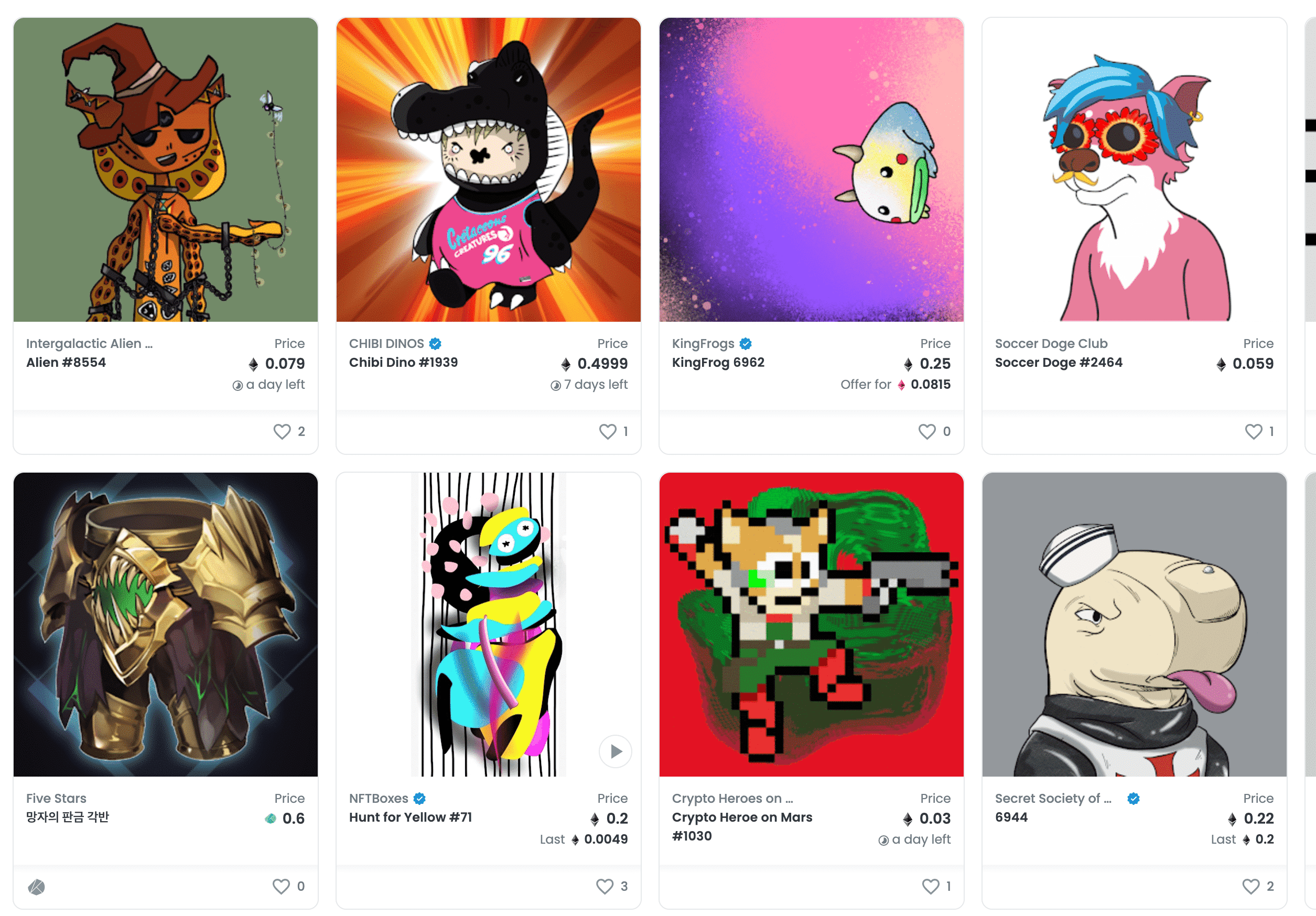 好,我相信通过这个例子,大家都对 NFT 有了一个浅显的认识了。那么假如你是一个出类拔萃的艺术家或者明星,那么你在哪里能卖 NFT 呢?有些网站提供了一揽子服务,比如非常出名的 opensea,https://opensea.io。我们来浏览一下它的商品。